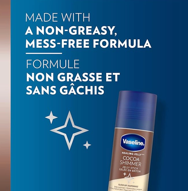Transforma tu rutina de cuidado corporal y disfruta de una piel que brilla con elegancia. Con el Vaseline Cocoa Shimmer Jelly Stick, cada aplicación es un paso hacia una hidratación duradera y un acabado luminoso. ¡Dale a tu piel el cuidado que merece y resalta tu luminosidad con cada uso!